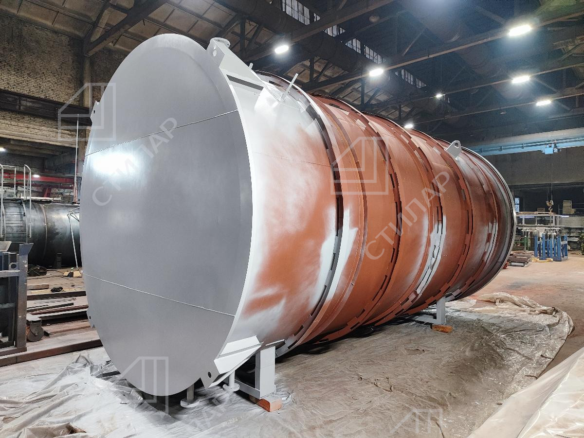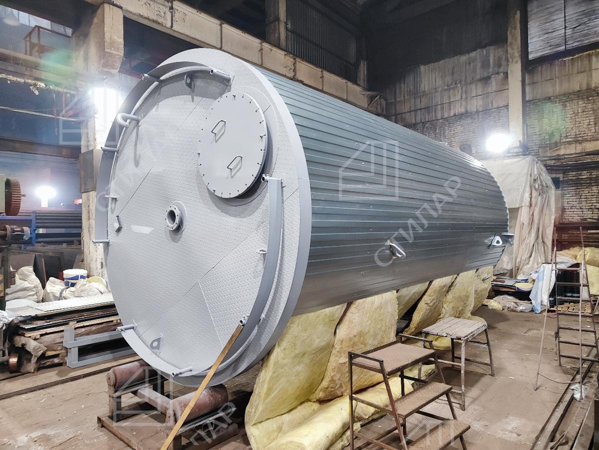 В октябре 2025 года мы изготовили вертикальный утепленный резервуара для хранения битума. Данный резервуар с объемом 50 кубических метров был произведён за 11 дней.